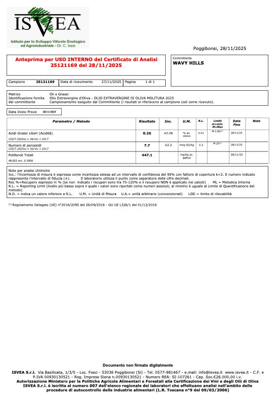 - Harvest: November 2025 (olio nuovo - newly pressed)